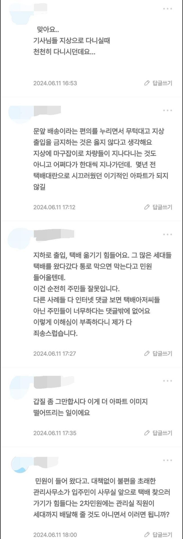 지상으로 출입하는것을 보았고 그걸 본 택배기사님은 차별을