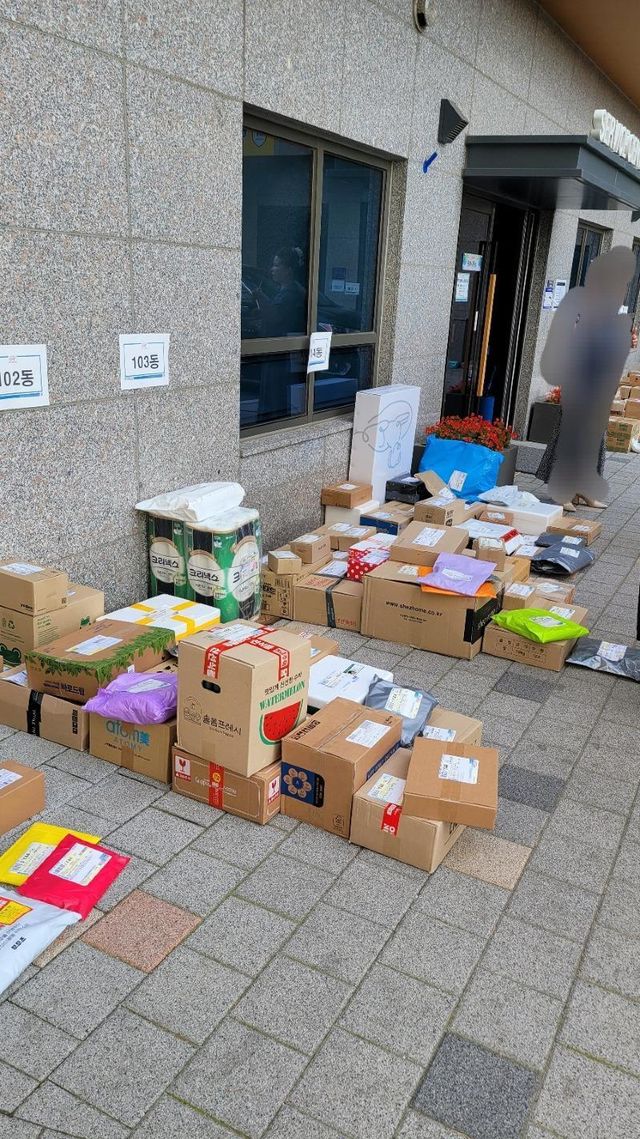 받는것에 분노를 참지 못하고 관리실 앞에 택배를 모두