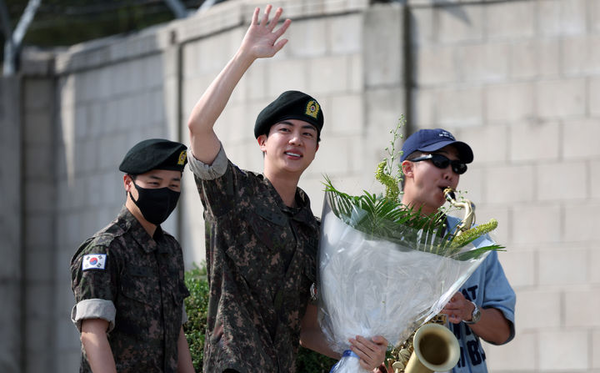 지난 2022년 12월 방탄소년단 멤버들 중 가장 먼저 입대한 진은 조교로 18개월 동안 모범적인 군 복무를 해왔다. 이후 방탄소년단 다른 멤버들 역시 원활하게 군 생활을 하는데 초석이 됐다.