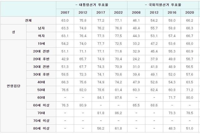 2-현 20대는 현 30대 후반~40대들이 20대 였을때보다 더블 스코어로 투표한다.