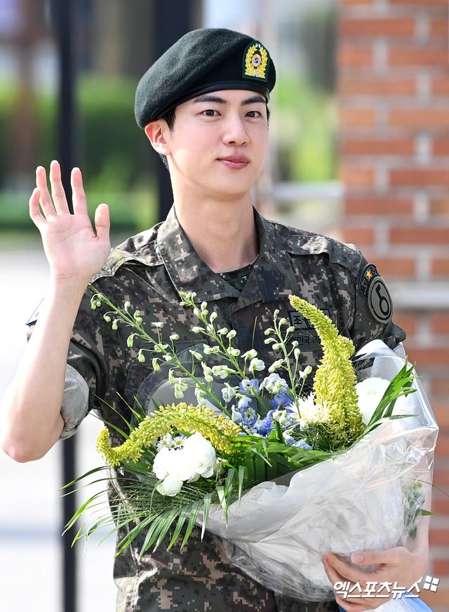 12일 오전 8시 50분께, 18개월간 경기도 연천군 5사단에서 군 복무를 한 방탄소년단 진이 사회로 돌아왔다. 이날 현장에는 국내외 취재진들이 몰려 그의 전역을 조명했다.