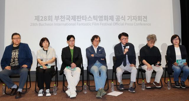 12일 서울 동대문디지털플라자(DDP) 서울-온 화상스튜디오에서 제28회 부천국제판타스틱영화제(BIFAN) 기자회견이 열렸다. 이날 현장에는 정지영 조직위원장, 신철 집행위원장, 남종석·모은영·박진형 프로그래머, 김종민 XR 큐레이터 등이 참석했다.