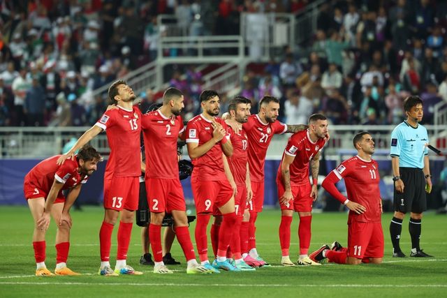 지난 1월 31일(현지 시각) 카타르 도하 압둘라 빈 칼리파 스타디움에서 열린 2023 아시아축구연맹(AFC) 아시안컵 16강전 이란과 시리아 경기. 시리아 선수들이 승부차기를 바라보고 있다. / 연합뉴스