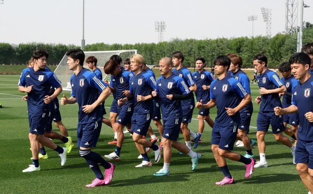 일본 축구대표팀 선수들이 지난 1월 16일(현지 시각) 카타르 도하 알 에르살 트레이닝 센터에서 훈련을 하고 있다. 모리야스 하지메 감독이 이끄는 일본 축구 대표팀은 2023 아시아축구연맹(AFC) 카타르 아시안컵 베트남과의 조별 경기에서 4-2로 승리를 거뒀다. / 뉴스1