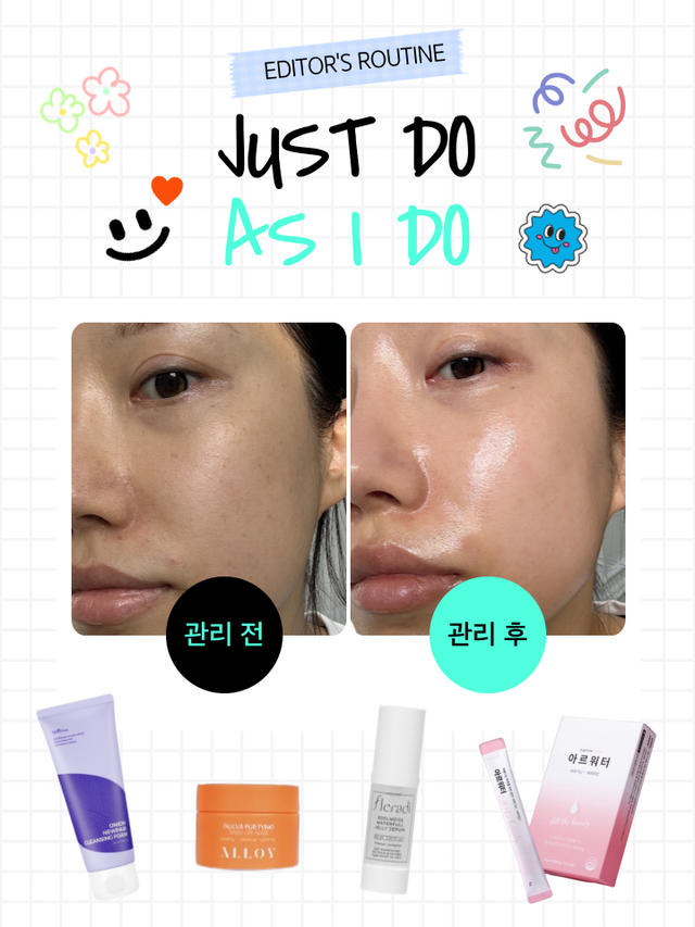 수분감 가득한 이너뷰티부터 스킨케어 아이템까지 야무지게 홈케어로 피부관리를 챙긴 결과 에디터의 문제 많던 피부에 많은 변화가 생겼다. 좁쌀과 트러블은 들어가고 칙칙했던 피부톤은 몇 단계는 밝아졌다.