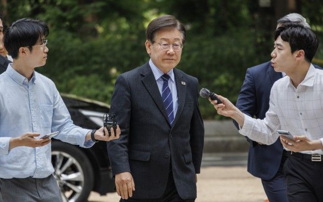 | 더불어민주당 이재명 대표가 10일 오후 서울 서초구 서울중앙지법에서 열린 '공직선거법 재판 위증교사 혐의' 관련 1심 속행 공판에 참석하기 위해 법원 청사로 들어서고 있다. /연합뉴스 |
