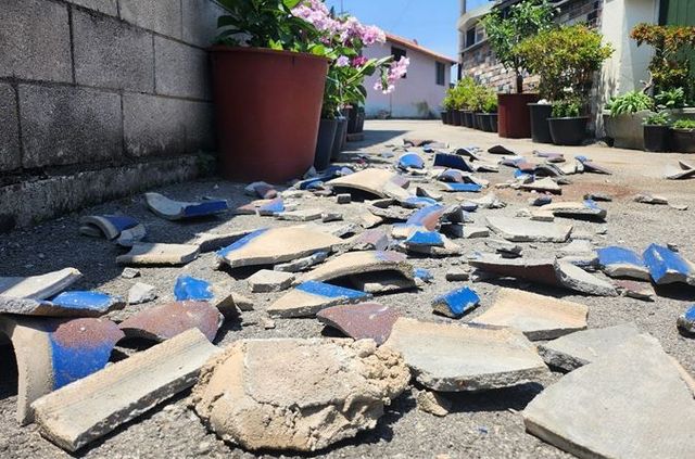 지진으로 인해 떨어진 기왓장 / 뉴스1