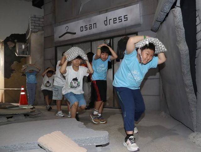 12일 경기 오산시 경기도국민안전체험관에서 학생들이 지진 발생 시 대피 요령을 배우고 있다. 소방청 등에 따르면 이날 오전 8시 26분께 전북 부안군 남남 서쪽 4㎞ 지역에서 규모 4.8 지진이 발생해 전국에서 수백건의 유감 신고가 잇따라 접수됐다. / 뉴스1