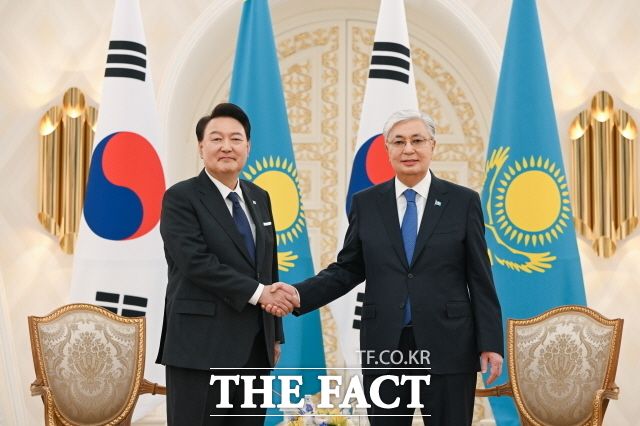 [더팩트ㅣ박숙현 기자] 카자흐스탄을 국빈 방문 중인 윤석열 대통령은 12일(현지시간) 한-카자흐스탄 정상회담에서 향후 현지 원전 사업에 대한 우리 기업의 참여를 요청했다.