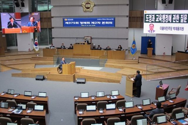 [와이뉴스] 경기도의회 박재용 의원(보건복지위원회, 더불어민주당, 비례)이 12일 경기도 의회 제375회 제2차 정례회 일문일답 시간을 통해 경기도지사와 경기도교육감을 상대로 ▲ 경기도장애인오케스트라 창단 ▲ 사회복지종사자 경력인정 범위 개선 필요성 ▲ 경기도장애인종합회관 건립 ▲ 경기도 복지국 내 장애인 관련 예산 확대 필요성 ▲ 학교 내 전기차 주차구역 및 충전시설 설치 문제점 ▲ 학교 내 위험시설에 대한 관리 인력 부족 ▲ 양주 율정중학교 개교 지연으로 인한 통학 안전과 학습권 침해 ▲ 장애인식개선공감학교 운영에 대해 질의했다.