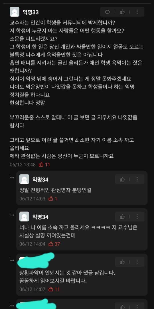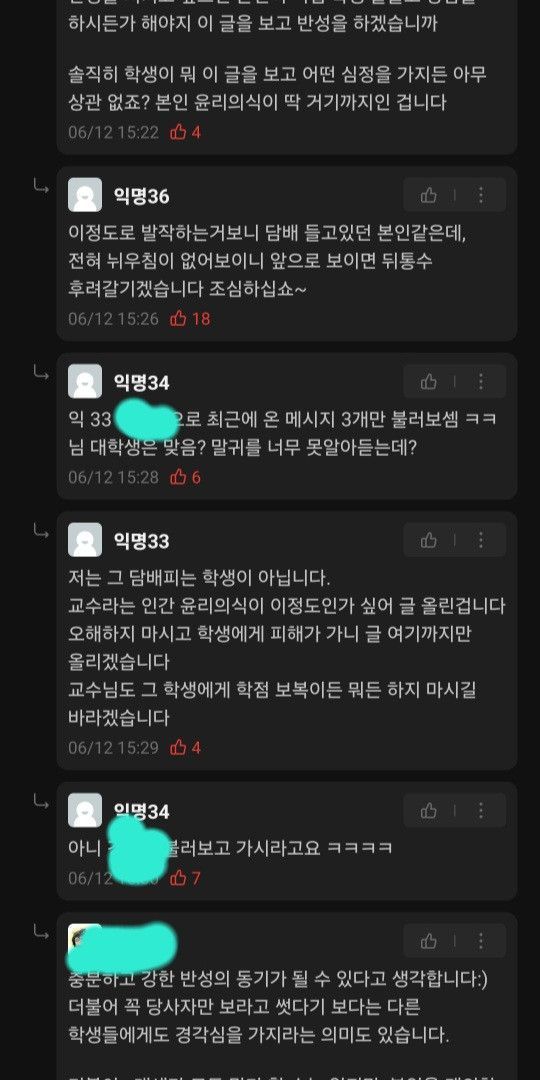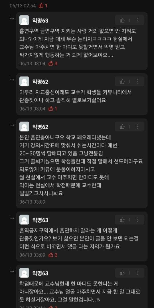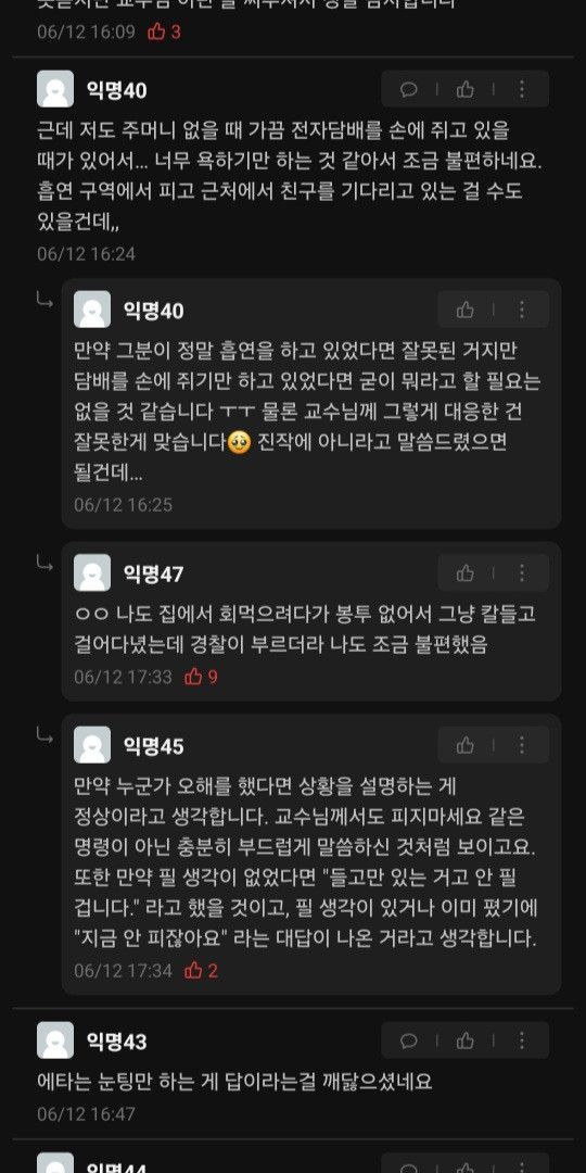 모 학교의 어느 교수님께서 에타에 흡연충들의 개판매너에 대해 글을 썼다가 발작한 흡연자들께서 풀발 중 ㄷㄷ