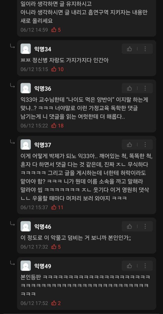 대학생 커뮤라서 그런지 흡연충들 비판글 올라오면 유독 발작 심한 듯? 다른 사이트였으면 그냥 뚜들겨 맞았을 놈들인데 ㅋㅋ