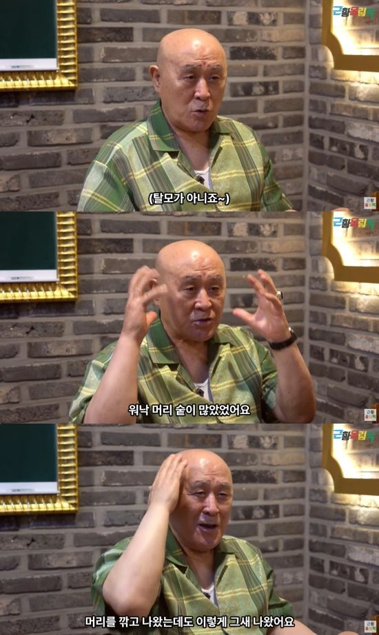 그는 "여기 이렇게 만져보시라. 머리를 깎고 나왔는데도 이렇게 자랐다. 머리가 무지하게 빨리 자란다"고 털어놨다.