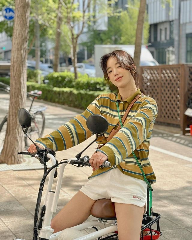 볼드한 럭비 셔츠가 부담스럽다면, 톤온톤 스타일을 매끄럽게 소화한 기은세를 참고하면 좋겠다. 티셔츠와 백, 슈즈를 모두 비슷한 브라운 톤으로 매치해 깔끔하게 완성했기 때문. 어디에나 잘 어울리는 화이트 쇼츠를 입은 건 신의 한 수.