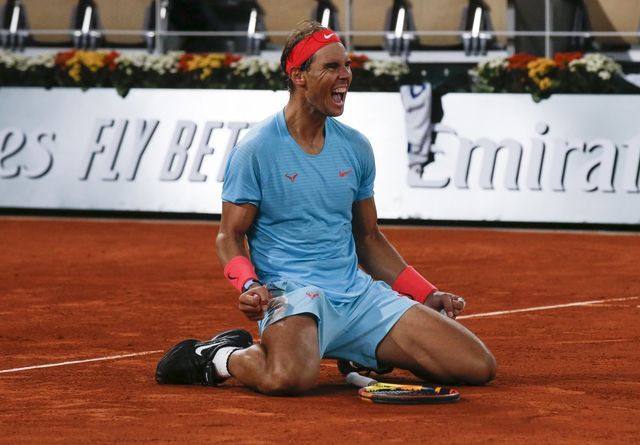 스페인의 라파엘 나달이 17살 아래 후배인 카를로스 알카라스와 함께 오는 7월 개막하는 2024 파리올림픽 남자테니스 복식에 출전하기로 결정돼 화제가 되고 있다. 사진은 2020년 프랑스오픈에서 우승한 뒤 포효하는 라파엘 나달. 스포츠동아DB