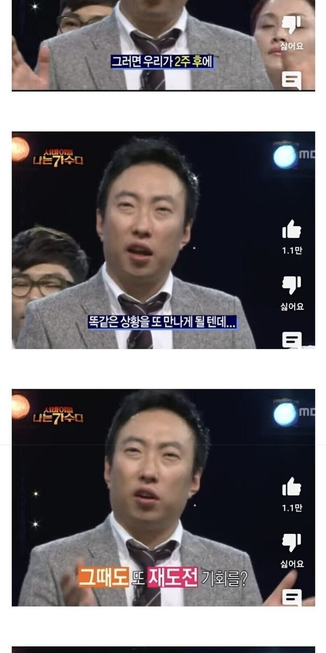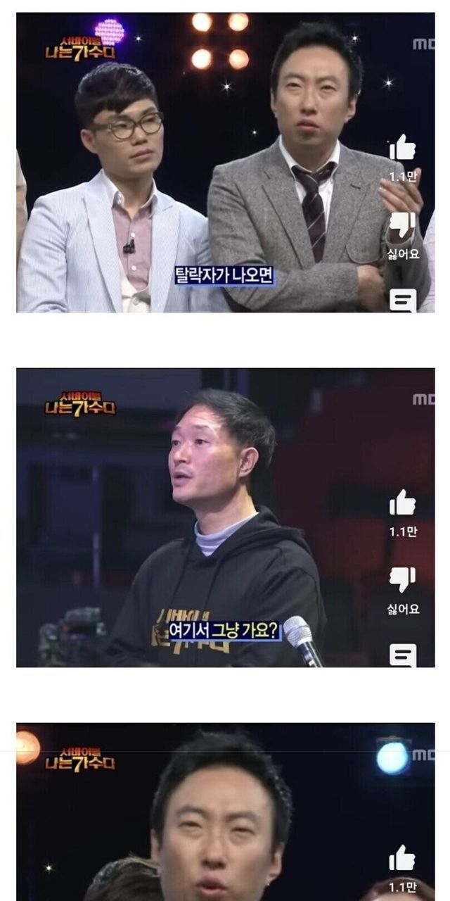 근데 첫회에 대형 가수인 김건모가 탈락하자 있지도 않는 땡깡부려서 재도전 받아낸 상황이 벌어지자 바로 앞에서 소신발언하는 박번복씨