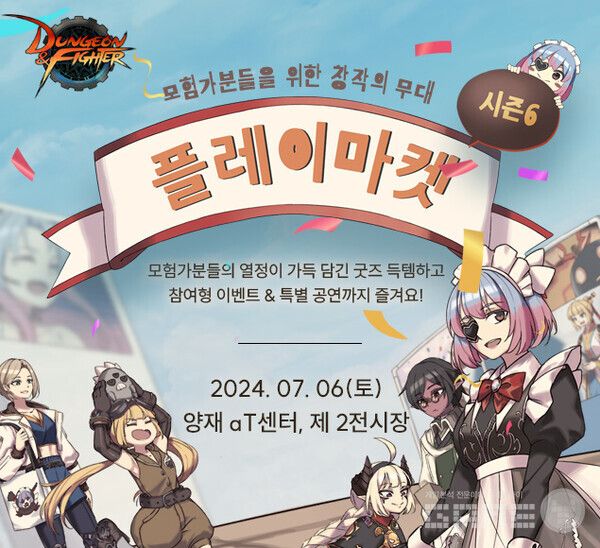 넥슨이 인기 온라인 액션게임 ‘던전앤파이터(이하 던파)’의 대표 2차 창작 행사인 ‘플레이마켓’ 시즌6를 7월 6일 서울 양재 aT센터 제2전시장에서 개최한다.