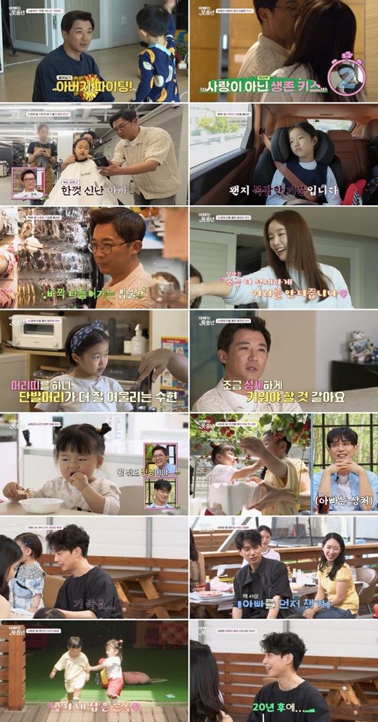 13일 방송된 채널A ‘아빠는 꽃중년’ 8회에서는 54세 아빠 안재욱이 9세 딸 수현이의 ‘쇼트커트’ 변신을 위해 미용실을 함께 방문하는 현장이 펼쳐졌다. 또한 52세 아빠 김원준은 20개월 된 둘째 딸 예진이와 ‘딸기농장’ 체험에 나선 가운데, 예진이의 어린이집 친구들과 ‘MZ 부모’들 사이에서 고군분투 하는 모습으로 유쾌한 웃음과 감동을 안겨줬다.