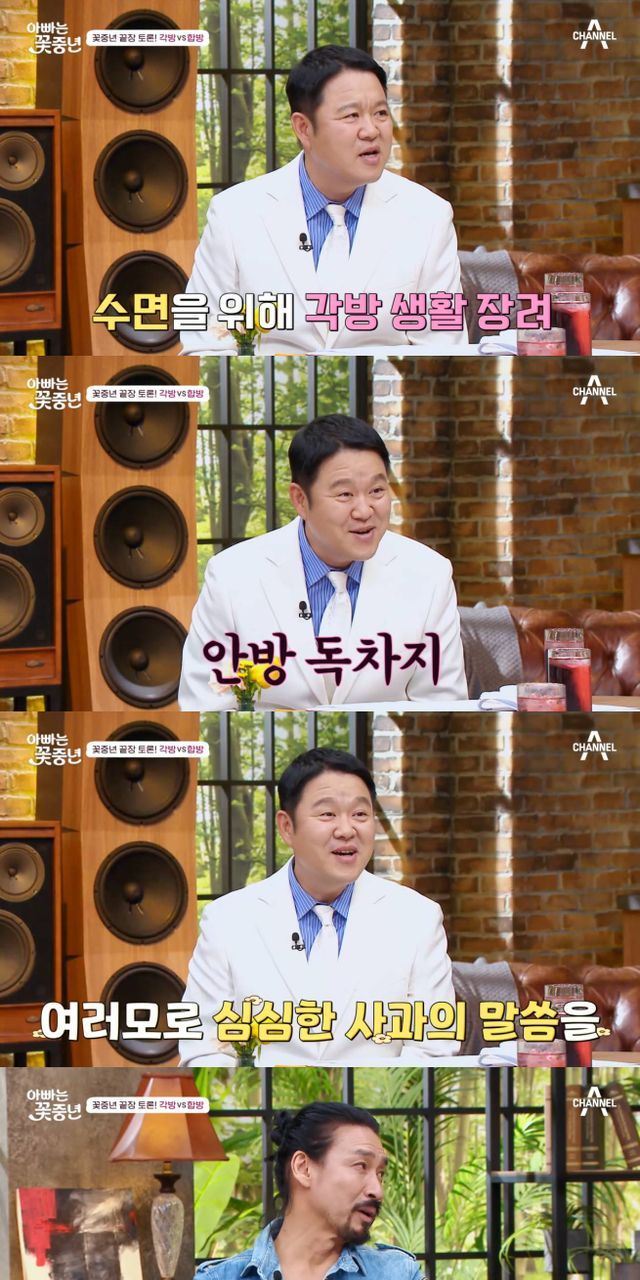 13일 방송된 채널A '아빠는 꽃중년'에서는 출연진들이 각방과 합방을 주제로 대화를 나누는 모습이 전파를 탔다.