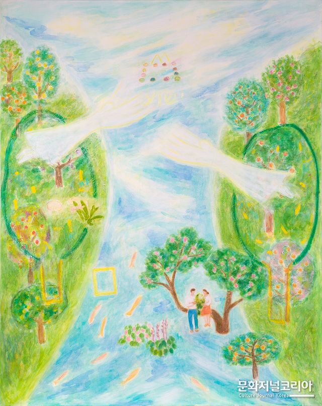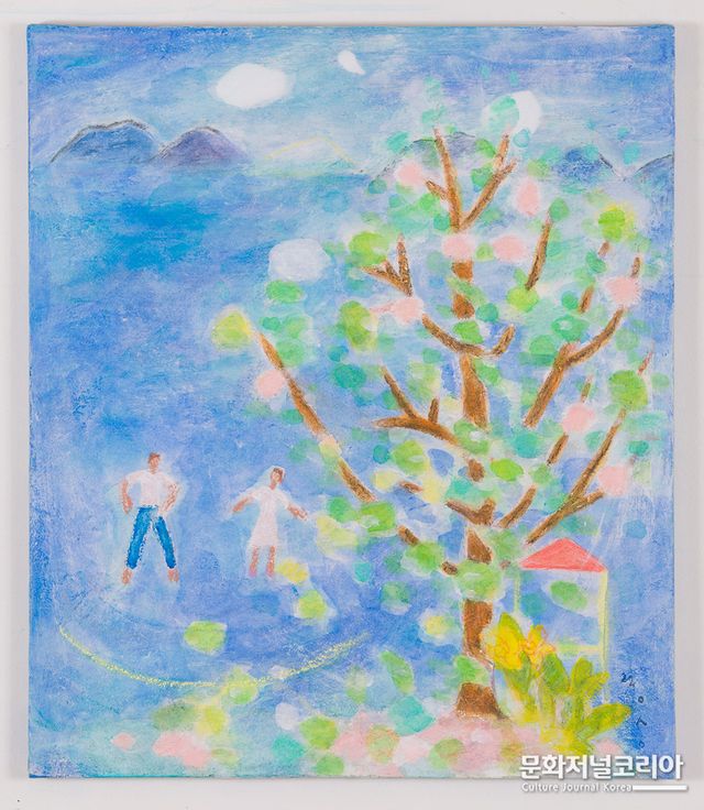 작가의 작품을 보면 행복하고 따뜻한데 작품을 보는 누구에게나 편안하고 고요함을 전달한다. 특히 작가의 신앙의 힘과 생명력이 가득한 작품은 소박하고 고요한, 과장되지 않은 편안함과 작가의 종교적 믿음으로 소망하는 세계를 은유적으로 표현하고 있다.