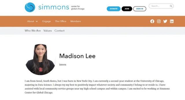 이 씨는 지난 1월부터 영어 이름 ‘매디슨 리(Madison Lee)’로 시몬스센터에서 인턴 근무를 시작했다.