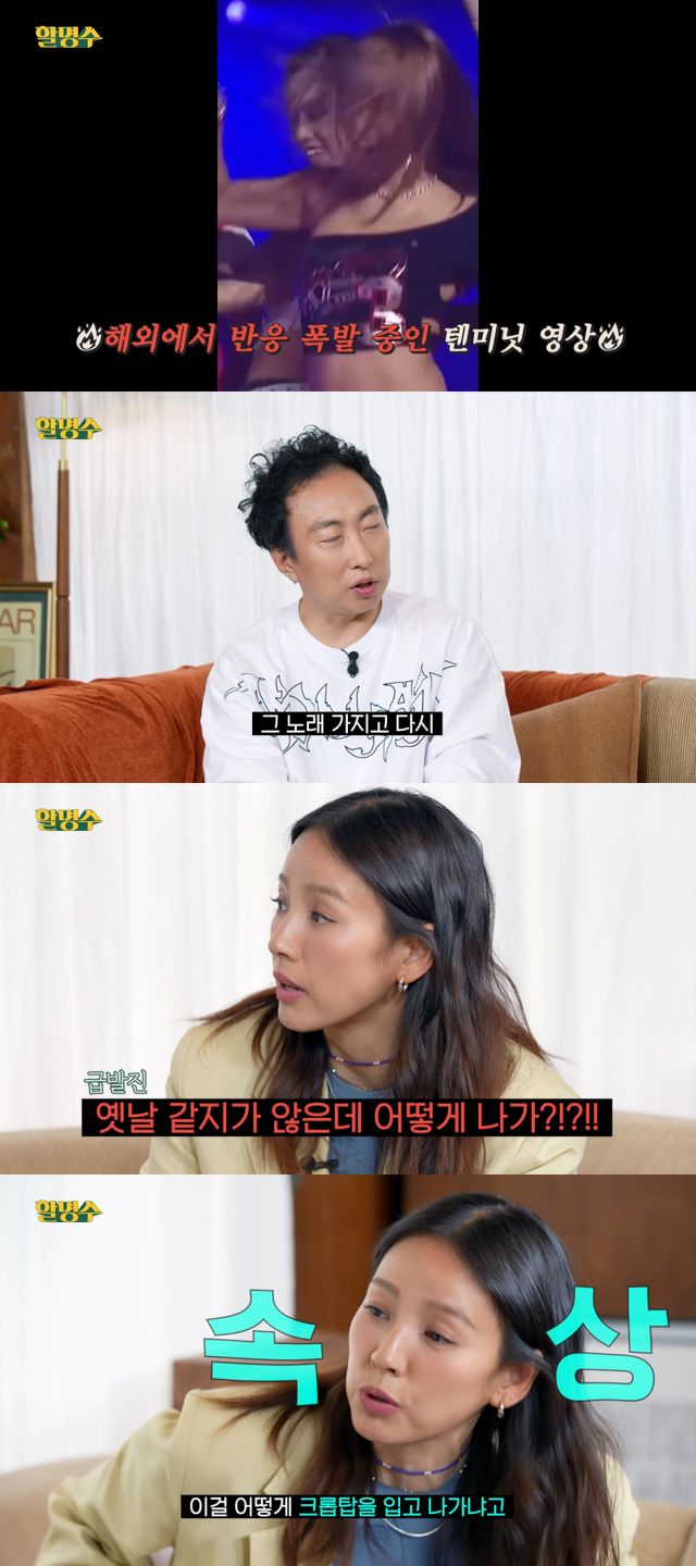 이어 이효리는 “다시 ‘텐미닛’이 인기를 얻고 있다고 한다. 왜 그런지 모른다”고 말하자 박명수는 “노래가 좋다”고 대답했다. 박명수가 “혹시 ‘텐미닛’ 리메이크해서 활동할 생각 없냐”고 묻자 이효리는 “사람들이 전세계적으로 인기가 많으니까 ‘본인이 직접 나와라’ 이런 반응을 보여주는데 예전 같지 않은데 어떻게 나가냐. 사람들은 그걸 기대하는데 배가 쭈글쭈글하다. 어떻게 크롭탑을 입고 나가냐”고 말해 웃음을 자아냈다.