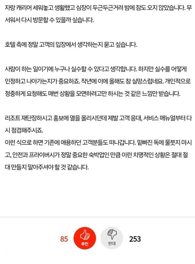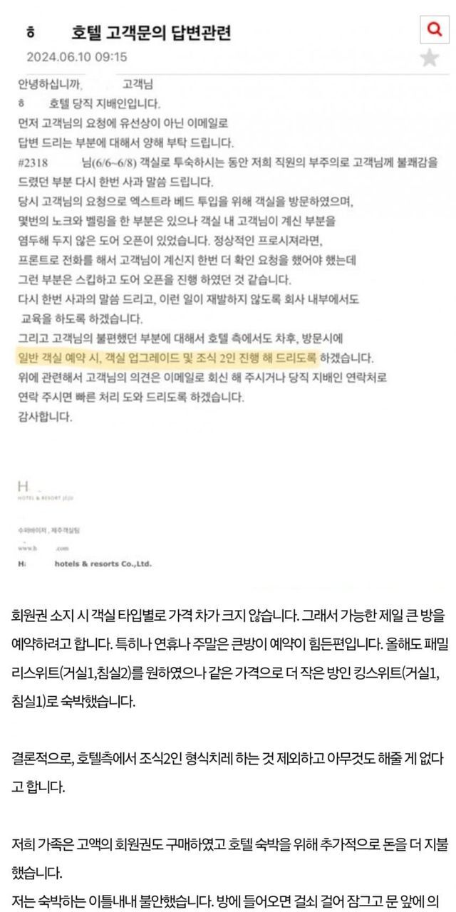 호텔 직원이 마스터키를 사용해 투숙객의 방에 무단으로 들어오는 행위는 법적 문제를 초래할 수 있습니다. 이러한 행동은 고객의 신뢰를 크게 훼손시키며, 호텔의 평판에도 심각한 영향을 미칠 수 있습니다. 호텔은 투숙객의 안전과 프라이버시를 최우선으로 고려해야 합니다.