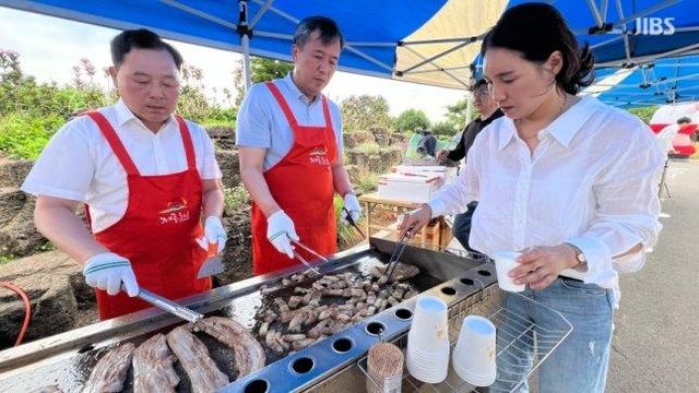 제주양돈농협과 제주자치도는 오늘(14일) 오전 10시부터 오후 4시까지 제주시 구좌읍 동쪽송당 동화마을에서 ‘돼지고기 맛과 우수성 홍보를 위한 시식회’를 진행했습니다.