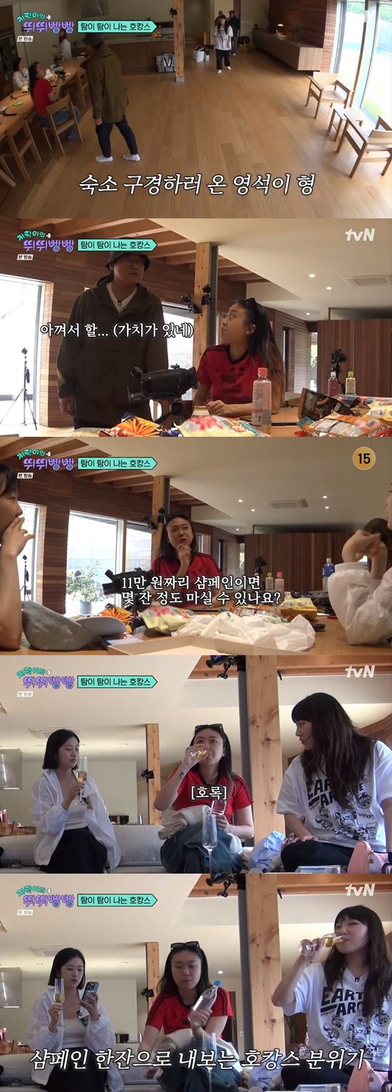 지락이들은 숙소에 준비된 샴페인을 즐기기 위해 나PD와 대리 운전을 3만 원으로 합의를 봤다. 이어 이은지, 이영지, 안유진은 샴페인 한잔으로 호캉스 분위기를 제대로 냈다.