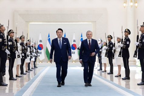 윤 대통령은 순방 마지막 날인 이날 오전 김건희 여사와 함께 우즈베키스탄 국빈 방문의 부대 일정으로 유네스코 세계문화유산인 우즈베키스탄의 고도시 사마르칸트를 방문한 뒤 귀국길에 오른다.