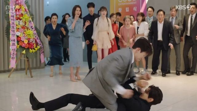 이에 필승은 “결혼할 사람이랑 같이 온 거 같던데 이런 얘기 결혼할 사람에 대한 예의 아니지 않나요? 지금 내 앞에서 인간쓰레기 인증하는 겁니까?”라며 자리를 뜨려 했으나 욱한 진단은 “이 건방진 놈이. 뭐가 어쩌고 어째? 인간쓰레기?”라고 소리치며 그에게 주먹질을 날렸다.