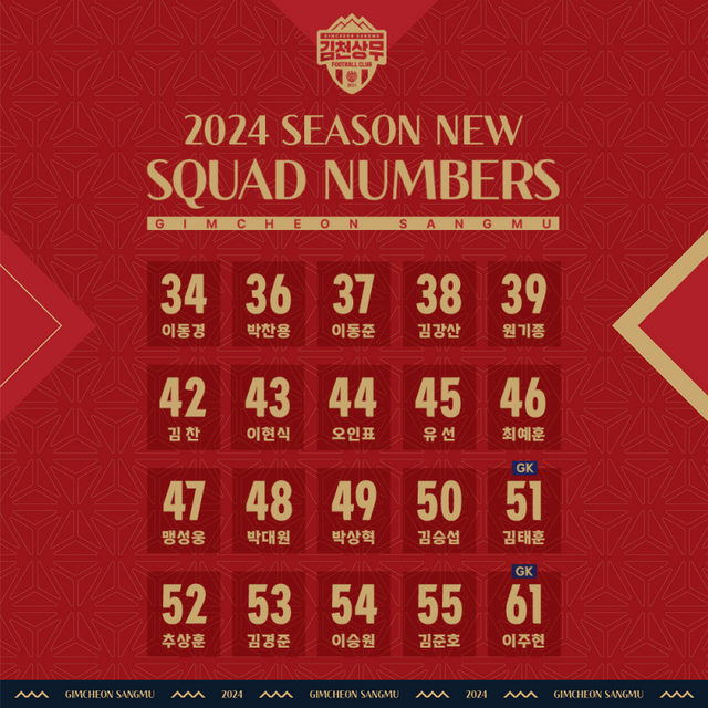 9기 선수 20명은 지난 4월 29일 논산훈련소 입소 후 5주 동안의 기초군사훈련을 거치며 6월 5일 훈련소 수료를 완료했다. 이어 지난 13일 김천 상무 유니폼을 입고 프로필 촬영까지 마치며 ‘입대 영입’의 모든 절차를 마무리했다. 배번은 지난 5월 3일 구단 공식 소셜미디어(SNS)를 통해 공개된 바 있다.