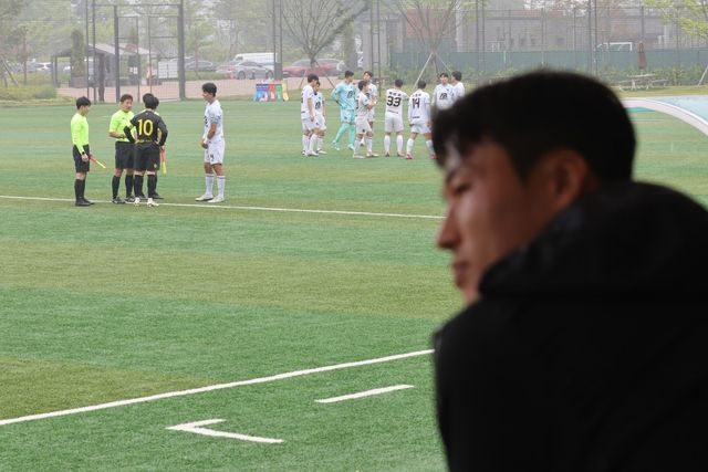 손준호가 지난달 26일 오후 서울 강남세곡체육공원에서 열린 K5리그 건융FC와 벽산플레이어스의 경기를 지켜보고 있다. / 연합뉴스