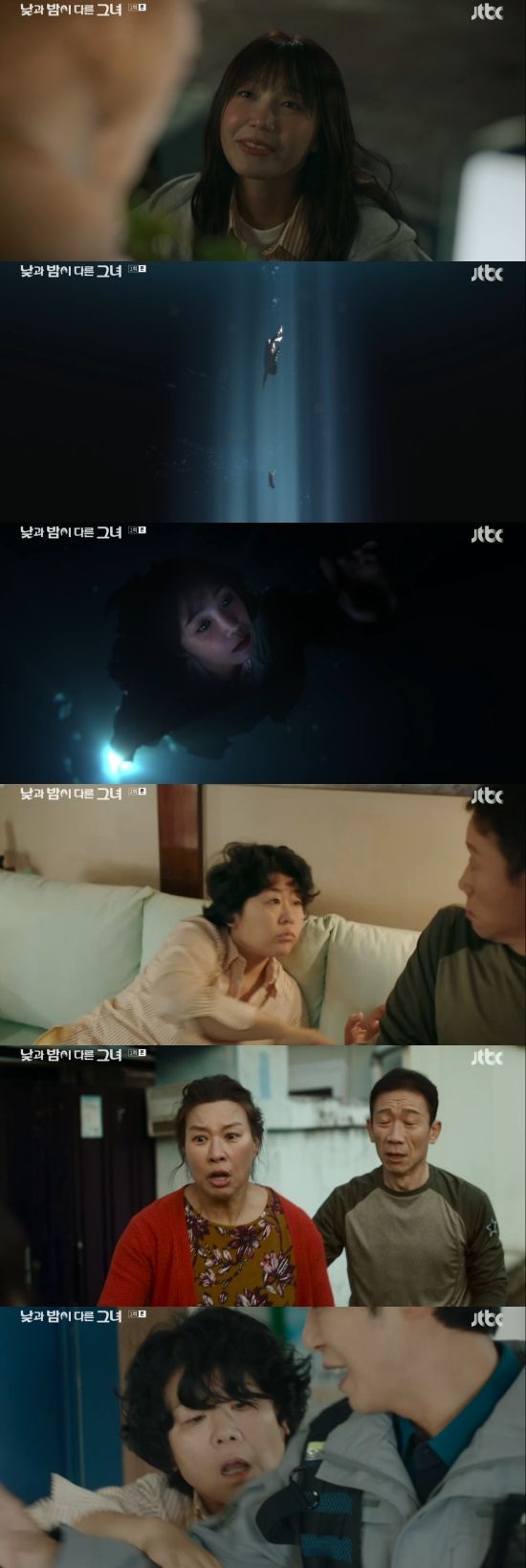 15일 첫 방송된 JTBC 새 토일드라마 '낮과 밤이 다른 그녀' 1회에서는 이미진(정은지 분)이 임순(이정은)의 몸으로 살게 된 모습이 그려졌다.