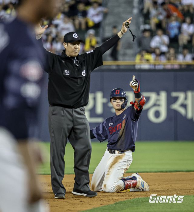 8회 말 수비에서 동점을 내주며 맞이한 9회 초 공격에선 타선 리드오프(1번 타자) 윤동희가 선두 타자 2루타, 손호영이 고의4구로 출루하며 이어진 기회에선 새 주전 1루수 나승엽이 적시 우전 안타를 치며 9-8 리드를 안겼다. LG 마무리 투수 유영찬을 상대로 빼앗은 리드였다. 염경엽 LG 감독이 강하게 드러낸 승리 의지를 꺾는 한 방이었다.