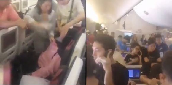 이 승객이 찍은 영상에는 승객들이 좌석이나 통로에 일어선 채로 종이로 자신과 주변 승객들을 부채질해주는 모습이 담겼다.