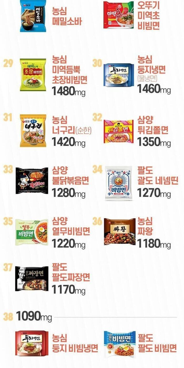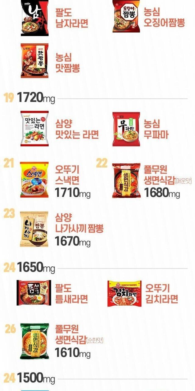 나트륨 함량 높은 라면 제품