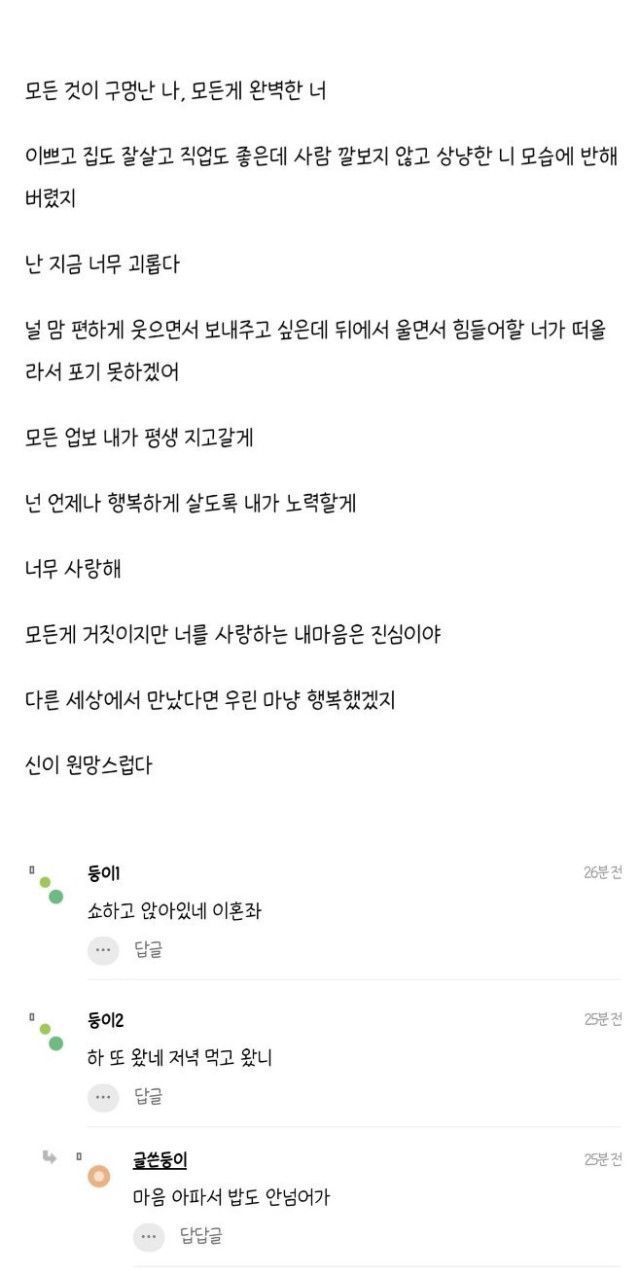 이혼한 거 숨기고 연애중.. 신이 원망스럽다..