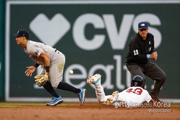 이날 총 10차례의 도루 시도에서 유일한 실패였다. 성공률은 90%. 이날 양키스 안방은 호세 트레비노 홀로 책임졌다.