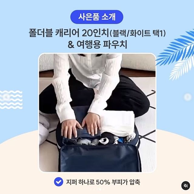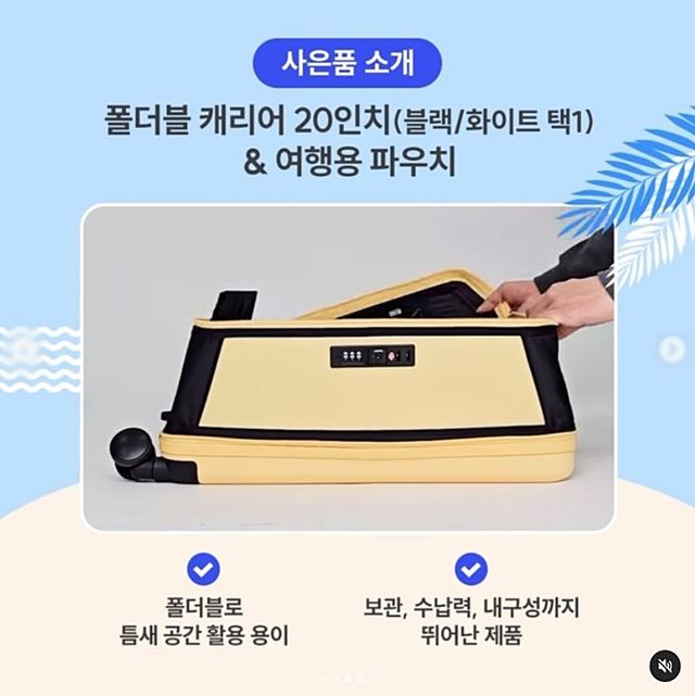 사은품인 폴더블 캐리어는 부피를 1/2로 줄인 압축형(접이식) 구조다. 소파 밑에도 쉽게 들어가며 견고한 소재로 만들어진 신개념 캐리어라고 이마트는 설명했다.