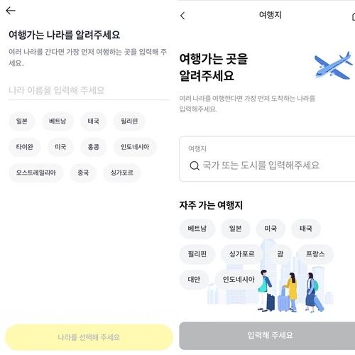 실제로 '여행가는 곳을 알려주세요' '여러 나라를 여행한다면 가장 먼저 도착하는 나라를 입력해 주세요'라는 문구가 동일하게 적용됐으며, 카카오손보가 최초 적용한 자주 가는 여행지 선택 옵션도 똑같이 구성됐다.