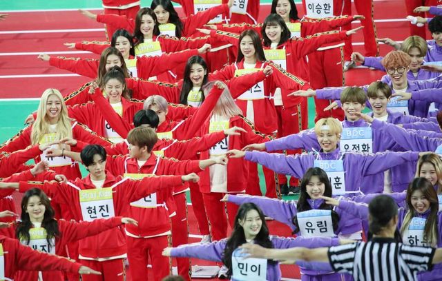 16일 오전 인천 남동체육관에서 열린 ‘2020 설특집 아이돌스타 선수권대회(아육대)’ 녹화에 참석한 있지, 스트레이 키즈, BDC, 써드아이, 다이아, 에이티즈 등이 체조를 하며 환한 미소를 짓고 있다. 2019.12.16/뉴스1