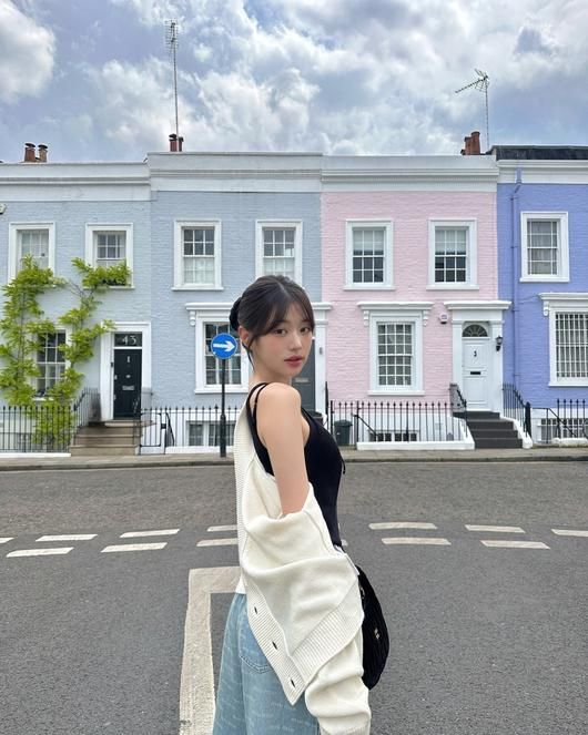 공개된 사진 속 장원영은 영국 런던의 한 골목길에서 파스텔 톤 의상을 입고 포즈를 취하고 있다. 끈 민소매 티셔츠에 카디건을 살짝 걸친 장원영은 늘씬한 몸매와 긴 다리를 자랑하며 우아한 아우라를 발산하고 있다. 특히, 밝은 미소를 짓고 있는 그의 모습은 행복감을 더해 눈길을 사로잡는다.