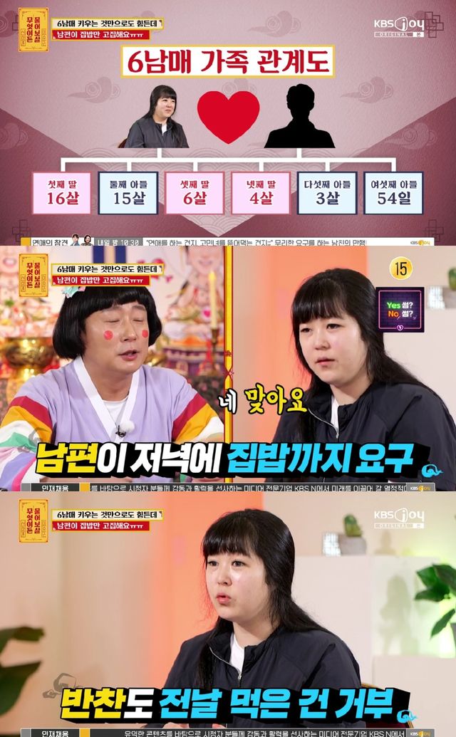 1일 방송된 KBS JOY '무엇이든 물어보살'(이하 '물어보살')에서는 전업주부 6남매 엄마가 등장했다.