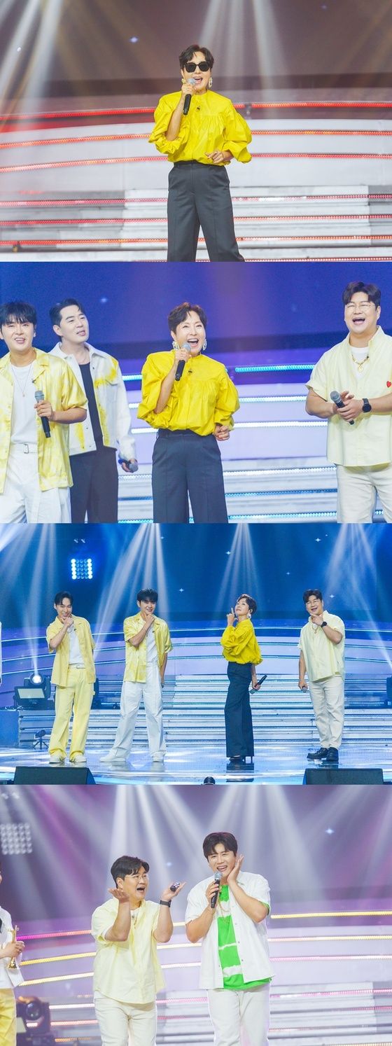 특히,앨범만냈다하면히트곡을쏟아내는'국민디바'정수라의등장에현장은그야말로열광의도가니가된다.TOP7과황금기사단은"우리가선배님을뵙다니!"라며자리에서기립해감격에겨워했다는후문.모두의기대에걸맞게이날정수라는무대를완벽히장악하며국민디바다운모습을과시한다고한다.