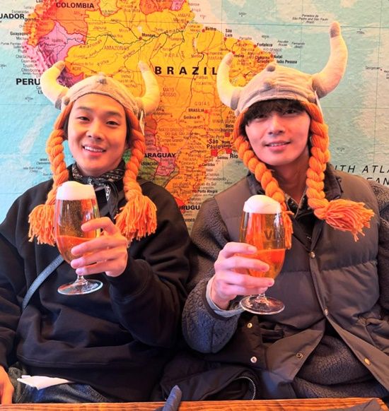 공개된 사진 속 박서준은 찐친 최우식과 함께 바이킹족 모자를 쓰고 맥주를 마시고 있는 모습이었다. "퇴근하고 한잔해"라는 말을 미루어 보아 이들은 '서진이네2' 영업을 마치고 술자리를 즐기고 있는듯 보였다.