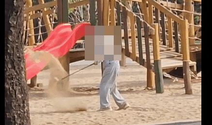 6일 SBS는 최근 온라인 커뮤니티에서 확산되고 있는 한 영상을 공개했다. 영상 속에는 모자와 장갑, 골프복을 차려입은 남성이 모래가 깔린 놀이터에서 골프채를 휘두르는 모습이 담겼다. 이 놀이터는 서울 여의도 한강공원에 있는 놀이터로, 남성이 골프채를 휘두를 때마다 모래가 허공으로 흩날렸다.