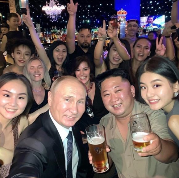 6일 X(옛 트위터) 등 소셜미디어(SNS)에는 푸틴 대통령과 김정은 위원장의 보기 드문 모습이 담긴 사진이 다수 올라왔다.