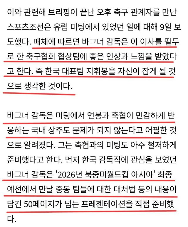 4. 이 이사를 필두로한 축구협상팀에게 좋은 인상과 느낌을 받아 한국대표팀 지휘봉에 대한 기대를 가짐
