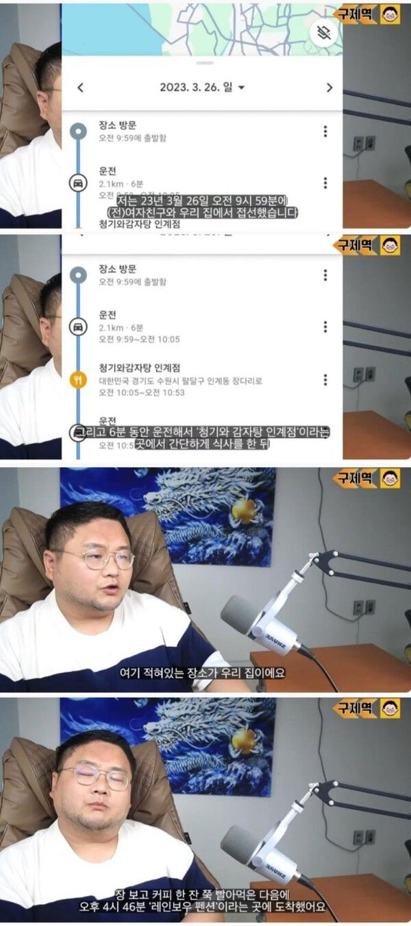 A씨는 “전 그 날짜에 구제역을 만나 밥을 먹은 적도 카페에 간 적도 없다”며 “제 스케줄 자체가 본인이 불법 업소에 출입한 것을 해명할 수 없는 스케줄인데, 교묘하게 시청자를 속여 자신은 절대 그런 곳에 출입하는 사람이 아님을 증명했다”고 분노했다.